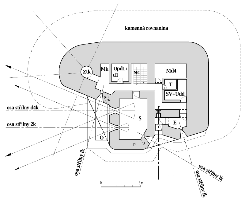 - Zbraně: L1 a M v kasematě s výstřelem na západ, 3xN pod betonem, 1xD ve zvonu
